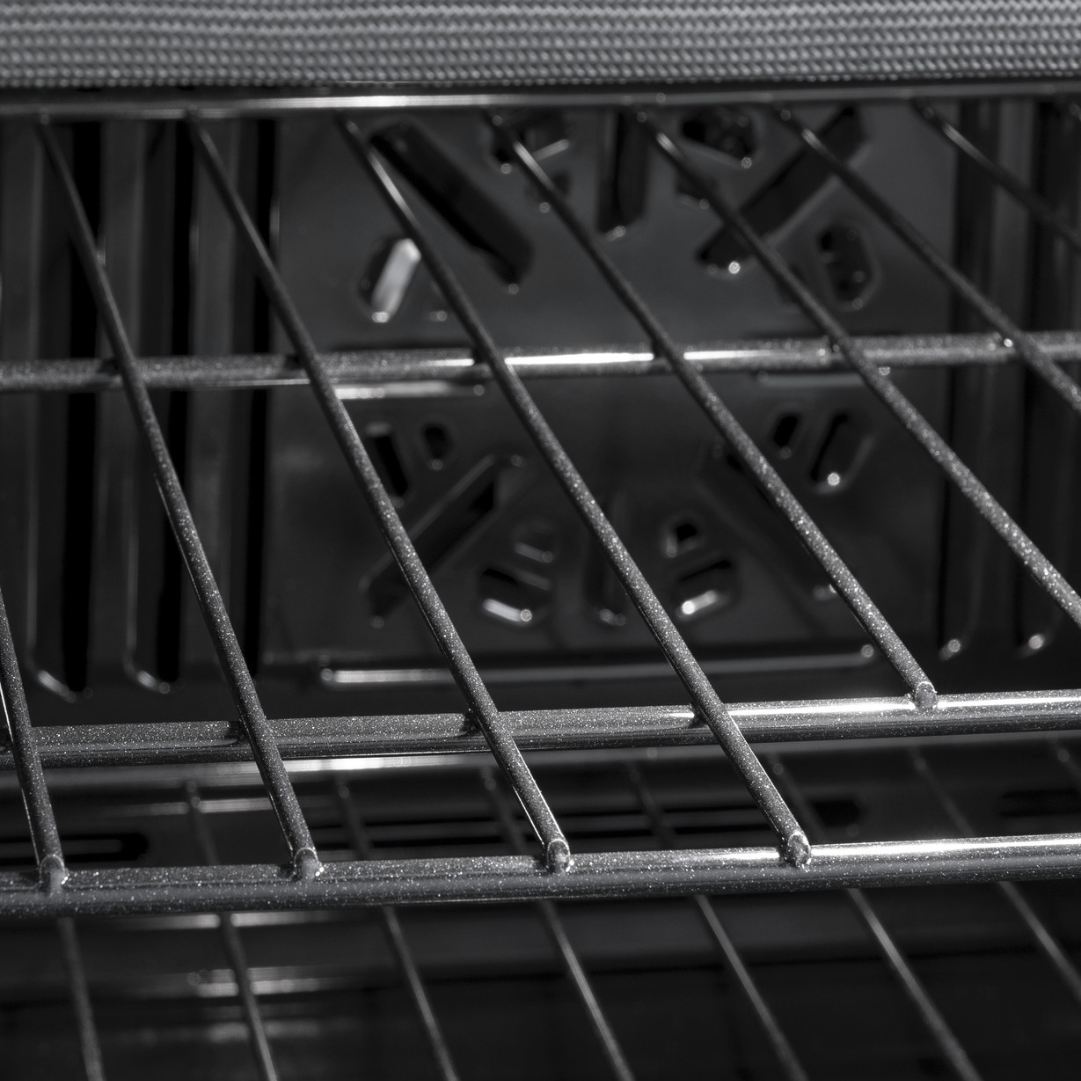 Incluso el horneado y la limpieza rápida están asegurados, con un elemento de 10 pasadas que calienta un área de cocción grande y está oculto para una superficie fácil de limpiar.